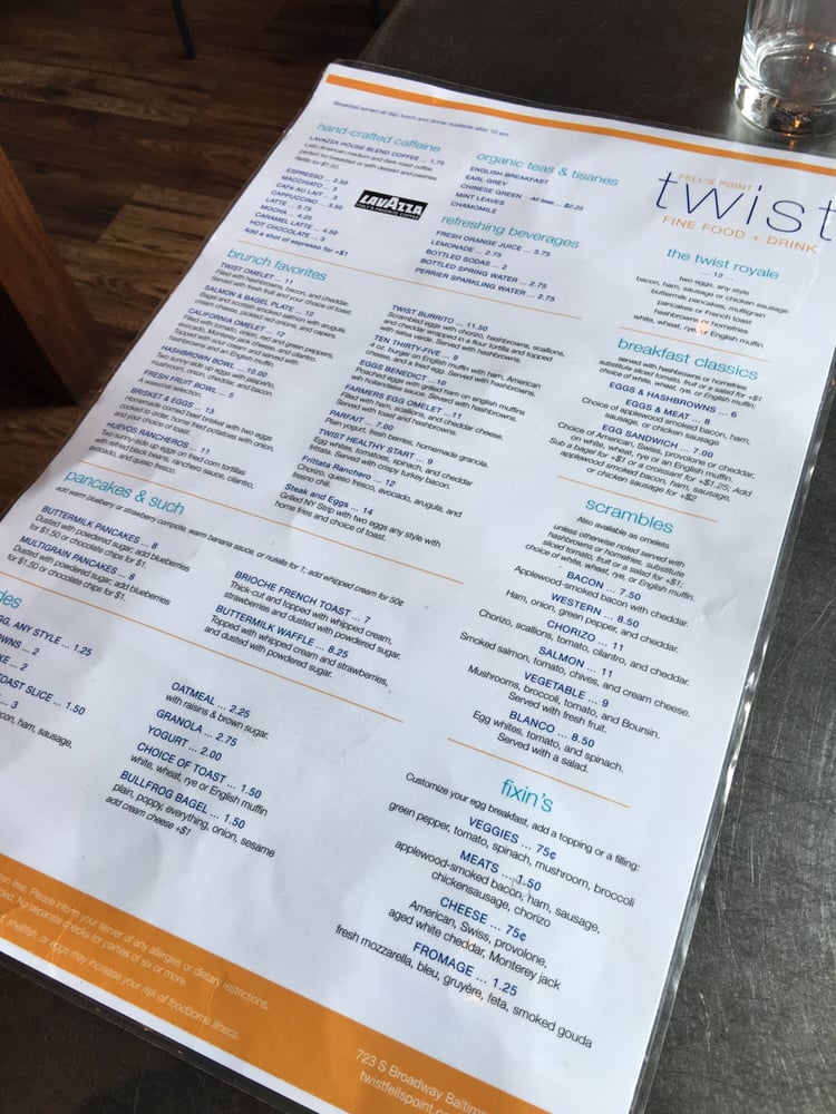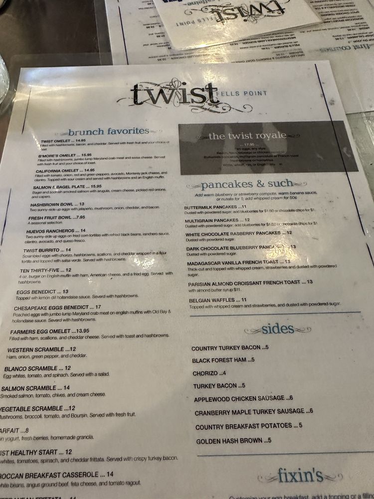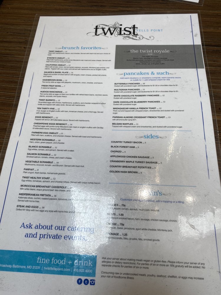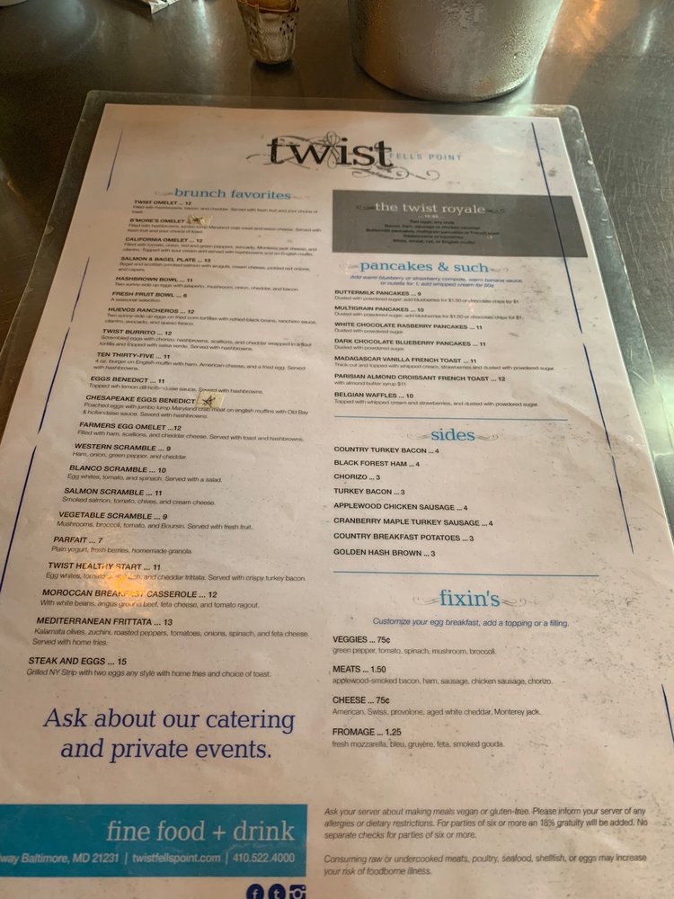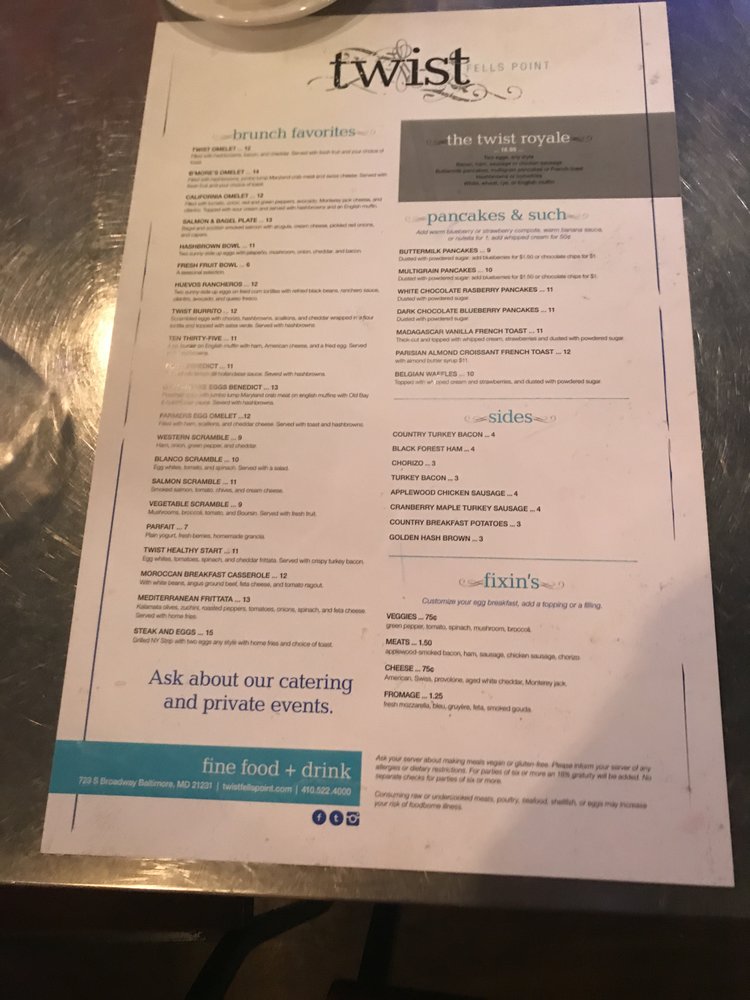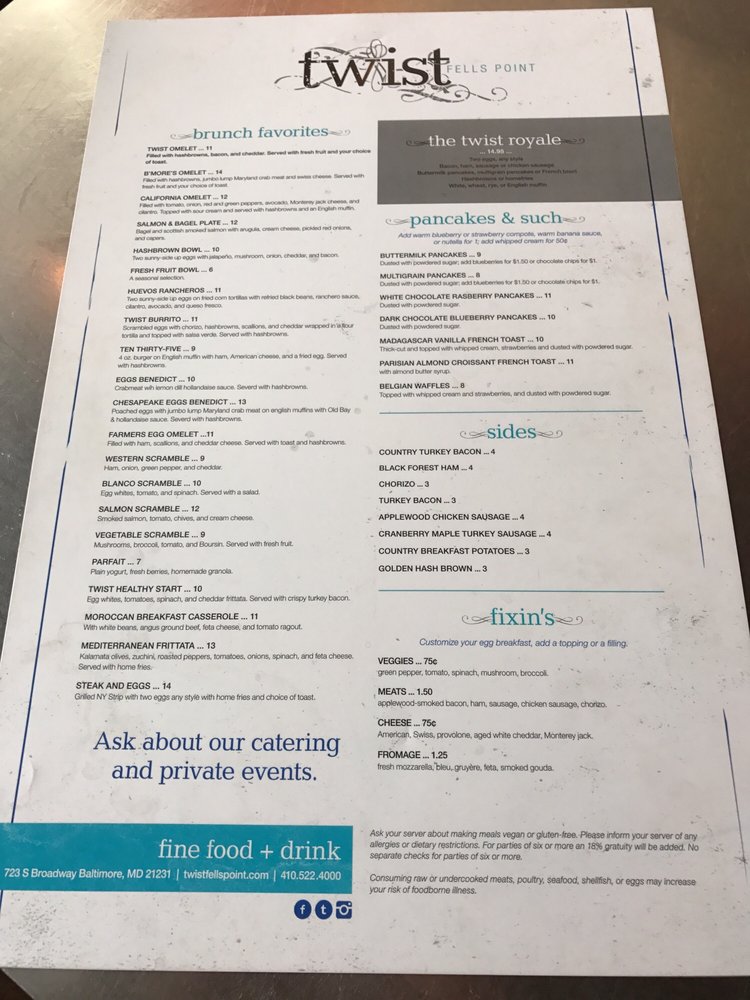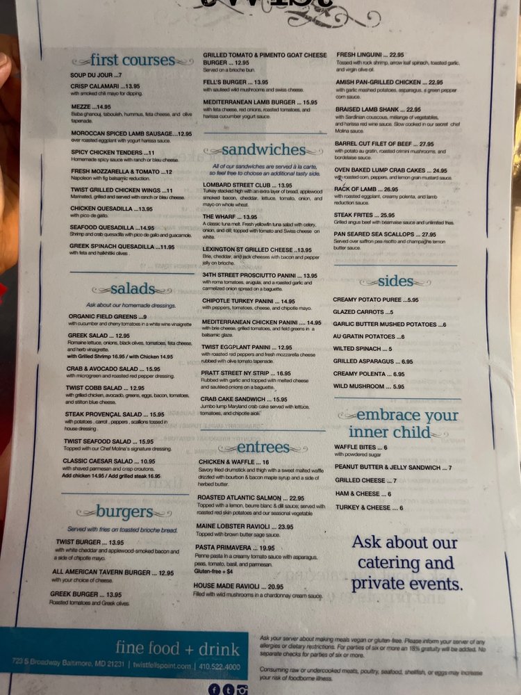 Twist Fells Point Menu